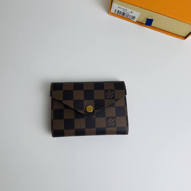 / 工厂p价 海外原单N41659金扣,独家实拍!Victorine 钱夹以 Monogram 帆布讲述温婉格调与功能设计的融合。一枚按扣点缀信封式翻盖,将粒面皮革