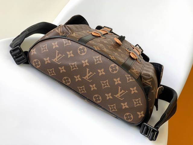 本款 Christopher 小号双肩包结合路易威登的标志性设计和材质,成就刚毅型格与俊雅风范相融的双重经典。老花橙色皮黑皮小号男士女士背包双肩包登山包Oo[握手][握手]Monogram Macassar 帆布搭配牛皮革饰边和皮革前带,侧袋增添收纳空间,可调节肩带实现舒适背携。
