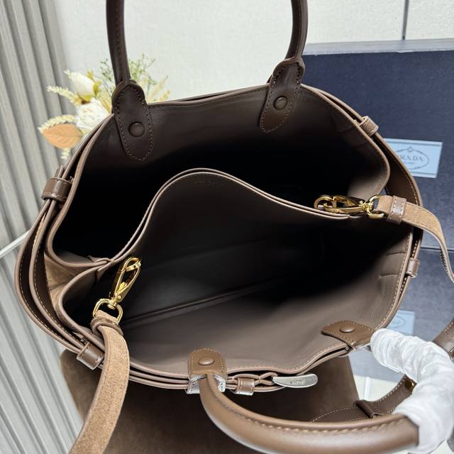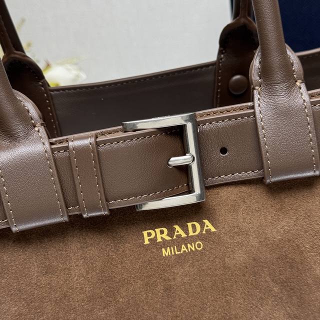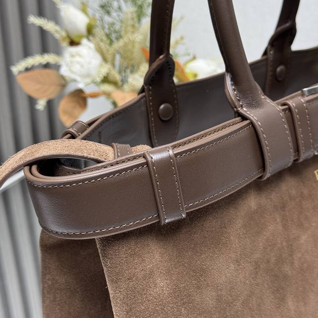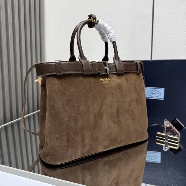 正品级 顶级原单 新款 磨砂皮大号38Cm 1Ba416大皮带到货啦 全新Doublebag中号购物袋Double系列进口鹿纹牛皮,内里配全羊皮优雅简洁的包身设