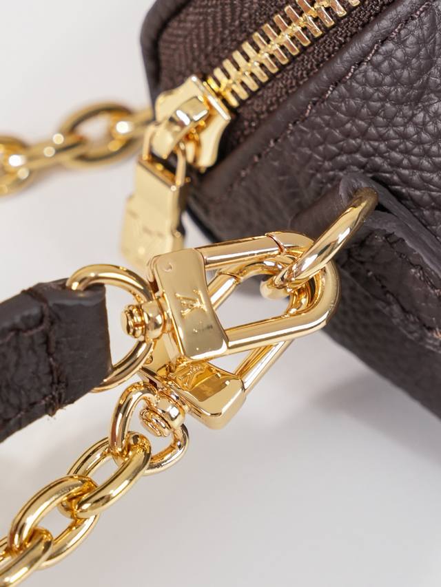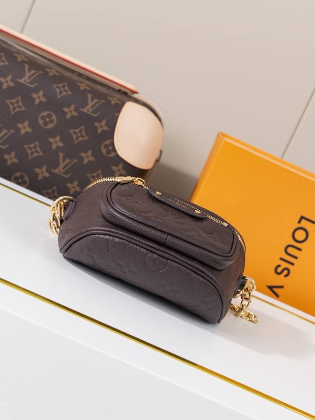 动态163C01芯片 M13827巧克力 顶级原单 独家背景实拍 本款 Mini Bumbag 手袋以 Monogram Empreinte 软粒面皮革呈现 Monogram 压纹,令经典设计焕发摩登新意。耀目链条和可调节肩带均可拆卸,解锁多种造型和背携方式。内设拉链主隔层,压纹皮革标签栖身拉链前袋。