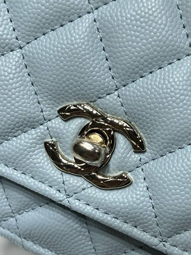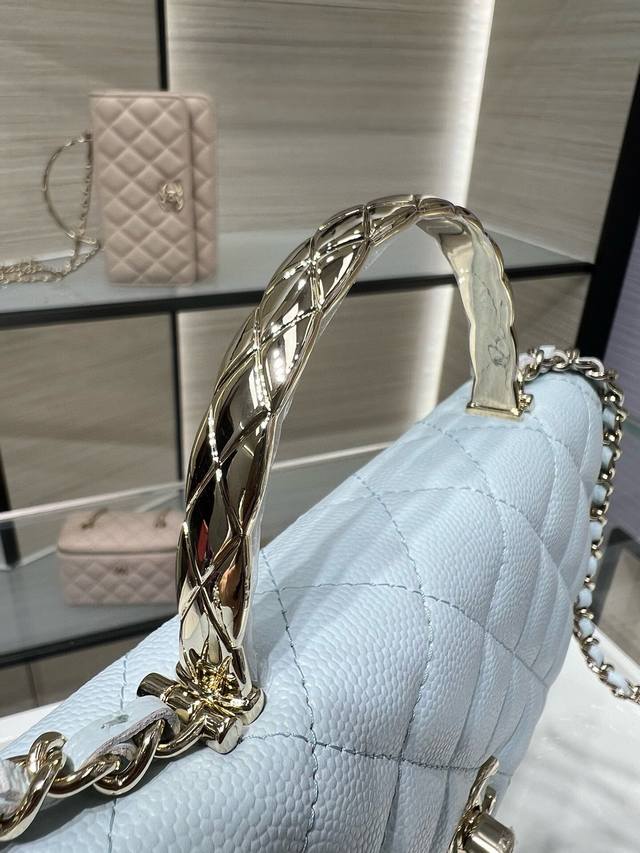 92991车边里皮 Chanel 新款 14K淡金色车边里皮 这一季的Cocohandle内里全皮 进口小颗球纹牛皮手提口盖包 全新版本经典王炸 :28Cm