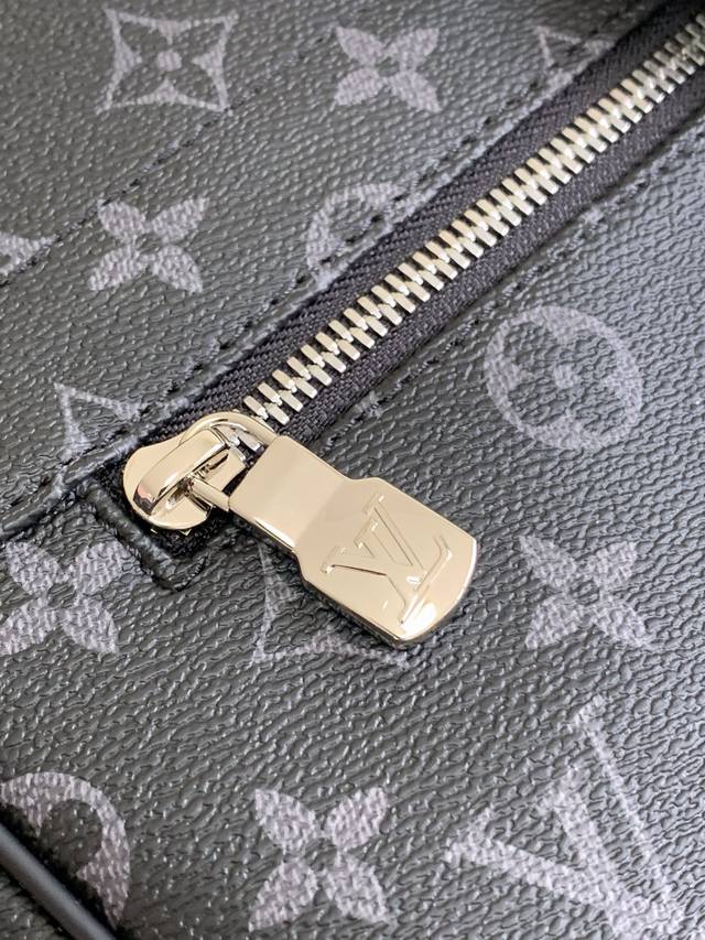 District中号手提包的大容量、多袋设计使其可放置 A4 大小文件、Ipad 及其他物品,是都市男士的理想之选。 华丽的 Damier EbèNe 帆布更令其锦上添花。可调节肩带 前隔层 后拉链隔层 4个扁平内袋,带两个笔槽 Ipad内袋 棉质帆布内衬!!型號:M44001;尺寸:31X27X8Cm