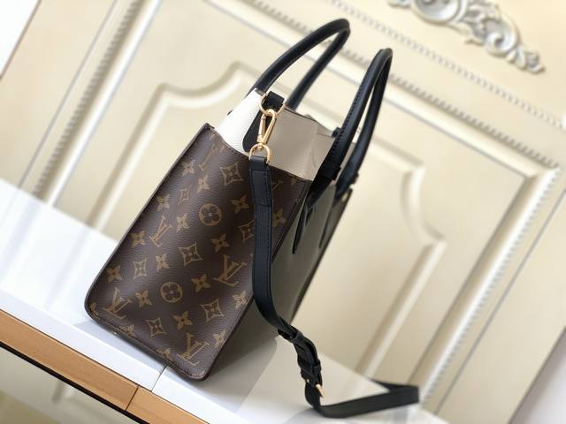 On My Side手袋展现小牛皮与经典Monogram帆布的优雅融合。撞色帆布塑造大号外袋,营造两只手袋融为一体的错视效果。充裕空间可轻松容纳办公所需,可调节肩带实现斜挎造型。