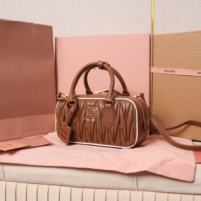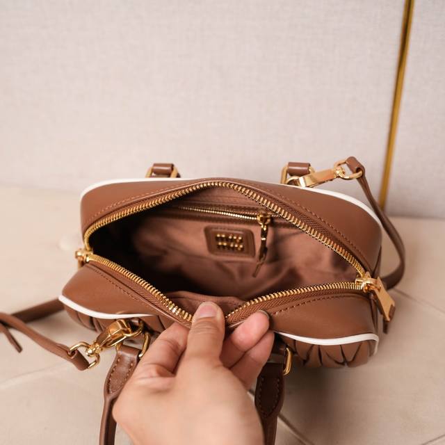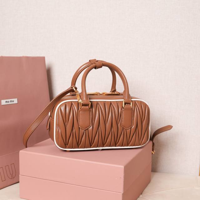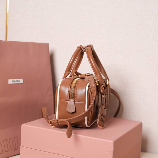 新版本:5Bb142,M家新款保龄球包包,官网主推,最新白边拼色,顶级进口小羊皮,Miu家独具风格Matelasse图案,包身精致立体有型,正面刻字徽标与皮革颜色相呼应,可拆卸可调节皮革长肩带,棉质缎面衬里,配拉链式口袋,众多明星网红同款,尺寸22X10.5X7.5Cm