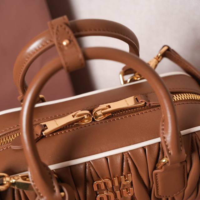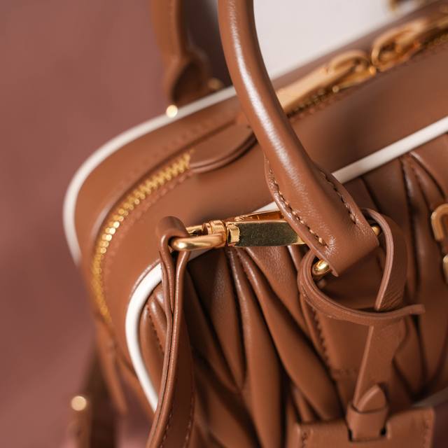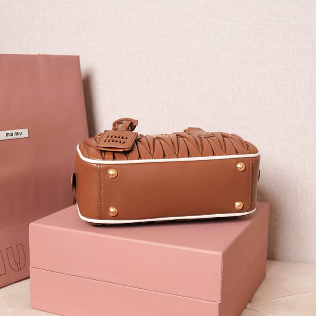 新版本:5Bb142,M家新款保龄球包包,官网主推,最新白边拼色,顶级进口小羊皮,Miu家独具风格Matelasse图案,包身精致立体有型,正面刻字徽标与皮革颜