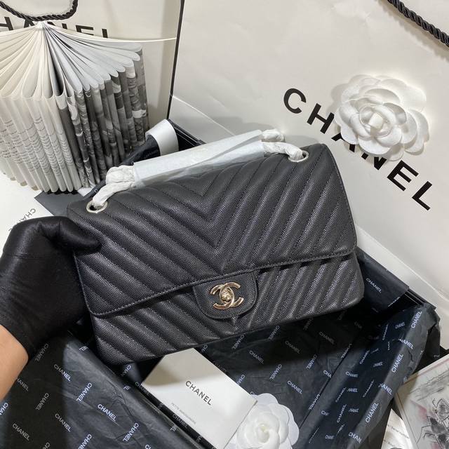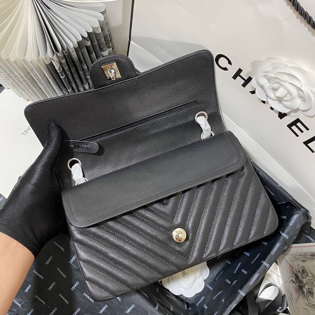 原单品质,金银扣扣 现货 细球大V格。Cf 1112小颗粒球纹皮 市场家独好货,可以进出柜专对比顶的尖货,皮质细节做及工看片图哦,堪完称美!采用法国进细口球纹小牛皮,尺寸25Cm。
