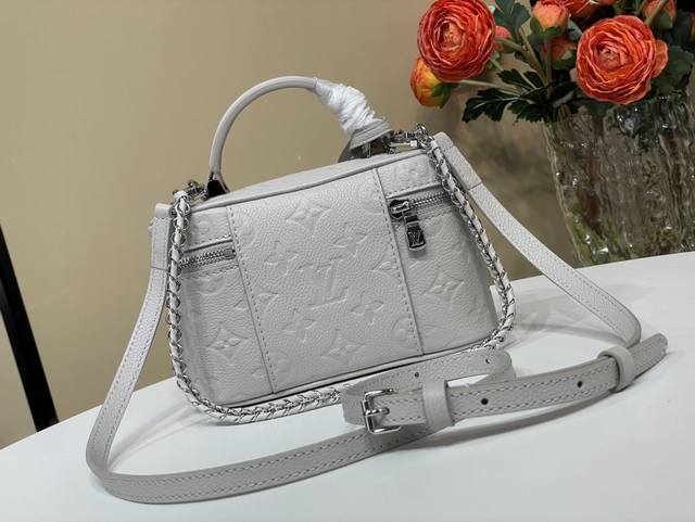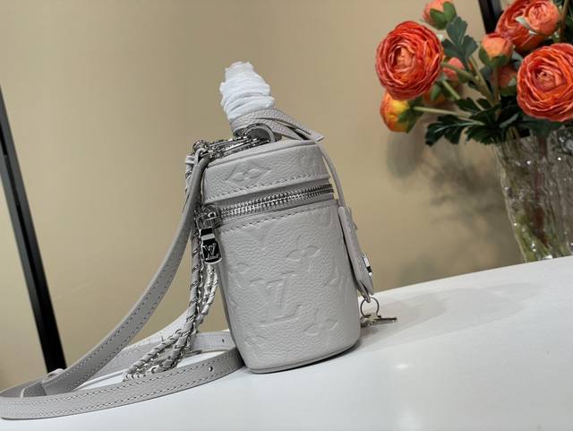 本款 Vanity Chain Pouch 手袋为经典 Monogram Empreinte 皮革渲染潮流色彩,再以 Lv 铭纹挂锁和钥匙包传递品牌旅行精神。别致设计可轻松融入各式造型。