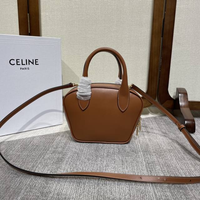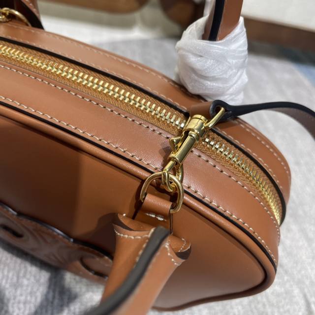 / celine 22S新品|迷你棕色凯旋门牛皮革保龄球包超级有质感的保龄球包,又可爱又复古,大小刚刚好,容量也可,可以放手机~斜挎手拎都可牛皮革,拉链锁闭,1个主
