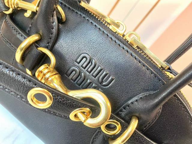 / miumiu缪缪 新品爆款迷你号贝壳包,釆用顶级复古植柔羊皮,复古磨砂感做旧金属配件,这款Aventure Nappa 皮革迷你手提包灵感源自 Miu家典藏单品