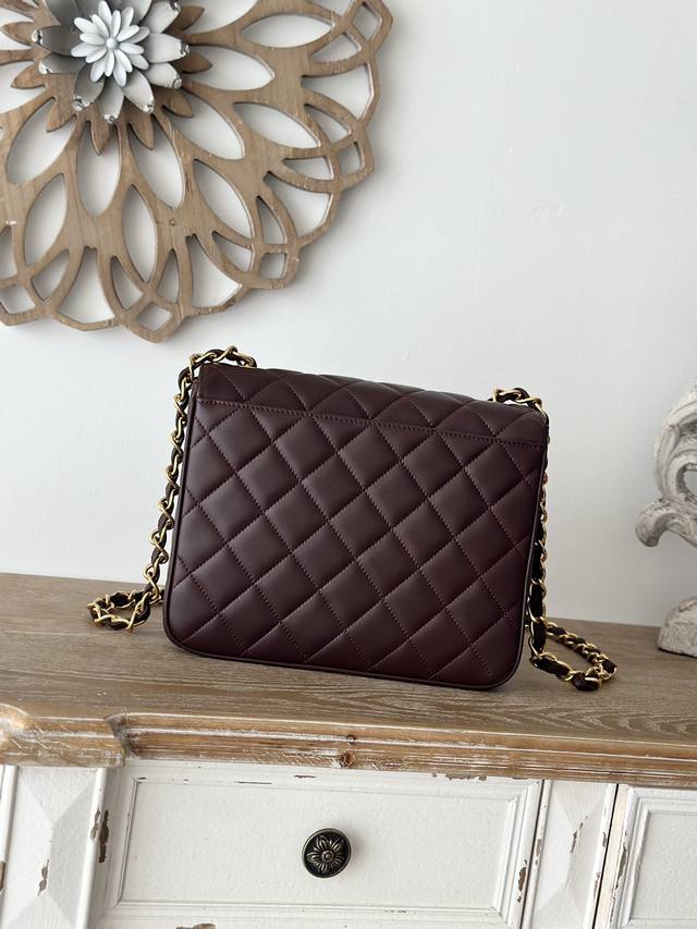 它的亮点在于这个镀金的大双C Logo,现在专柜版的Cf已经没有这样的设计了,都是小双C。采用口盖设计 容量非常大 可单肩 斜挎 也可以把手链收短变手提包