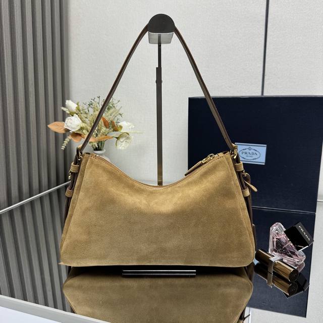 顶级原单 小号磨砂皮 新款Aimee腋下包1Bc229这款鹿皮Hobo腋下包设计气质简约,采用进口磨砂牛皮,正面金属三角形珐琅徽标,配有可拆卸皮革肩带,皮质细腻柔软,实用轻便容量空间大高级百搭,又一个时尚爆款。赶紧入手吧,太美了尺寸:长31X高18X底10Cm!