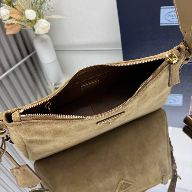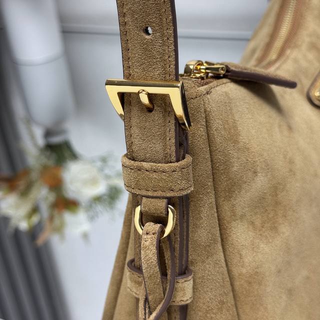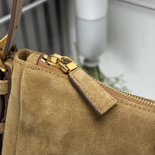 顶级原单 小号磨砂皮 新款Aimee腋下包1Bc229这款鹿皮Hobo腋下包设计气质简约,采用进口磨砂牛皮,正面金属三角形珐琅徽标,配有可拆卸皮革肩带,皮质细腻