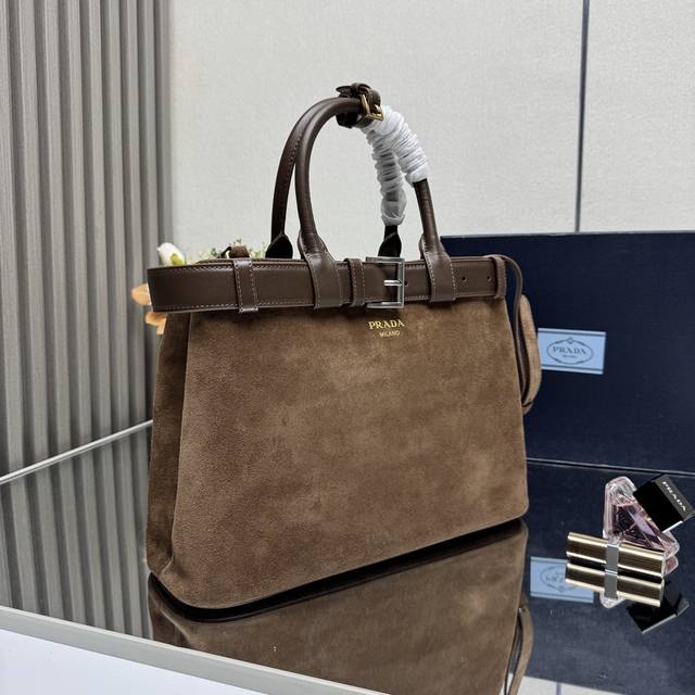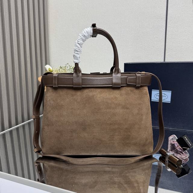 / 顶级原单 新款 磨砂皮中号35Cm 1Ba417大皮带到货啦 全新Doublebag中号购物袋Double系列进口鹿纹牛皮,内里配全羊皮优雅简洁的包身设计正面印