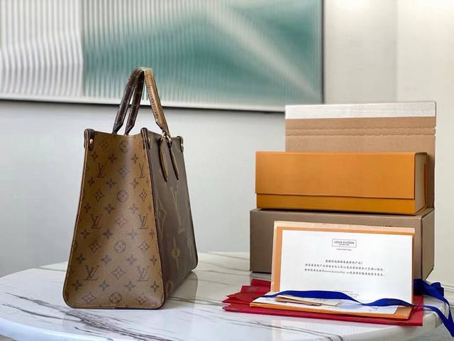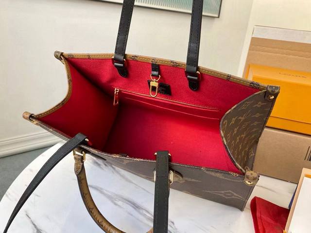 / 黑皮肩带 顶级原单 M45321 黑皮长肩带 Onthego 中号手袋将经典 Monogram 帆布与 Monogram Reverse 帆布分饰两侧,迥异风尚