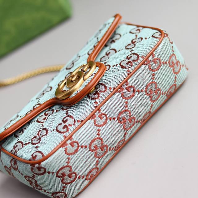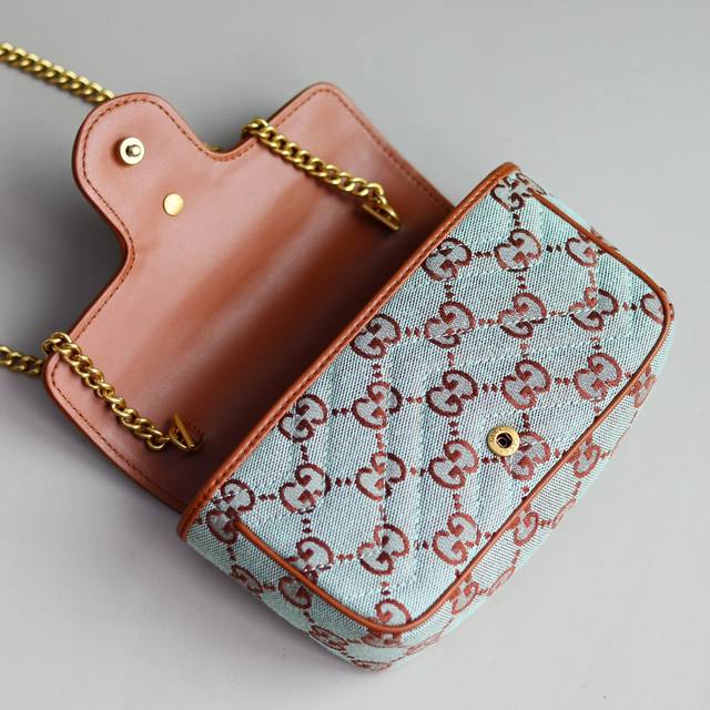 简介:这款单品出自Lido系列,设计灵感源自意大利海岸的夏日风情和海滩俱乐部。全新系列小皮件灵动玩转活力配色,匠心呈献亮眼新作。这款肩背包选用经典廓形,巧妙搭配纽扣开合和内部钩扣,便于挂接配套的钱包或手拿包。全新淡蓝色和棕色Gg帆布与棕色皮革滚边相得益彰,双G配件更添一抹亮丽点缀。