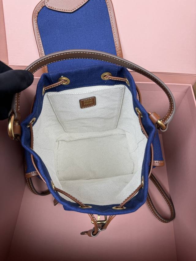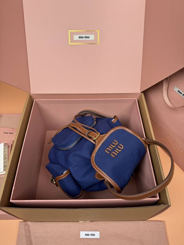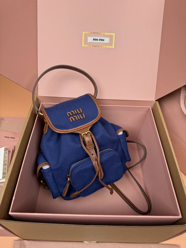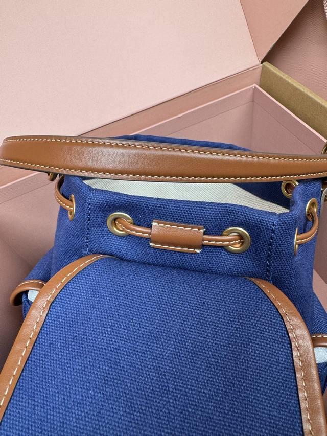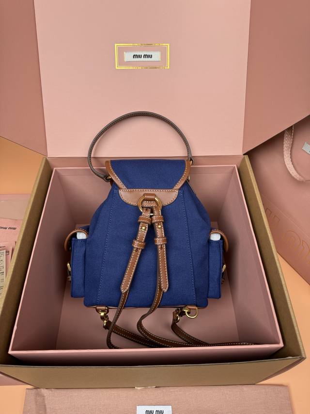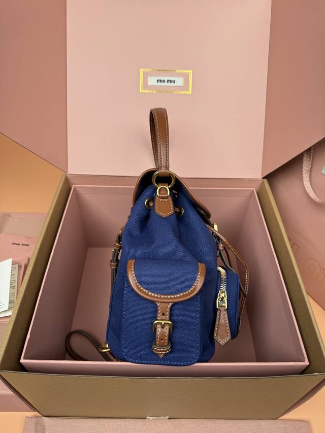 特级五金原厂皮 帆布和牛皮革双肩包~蓝色