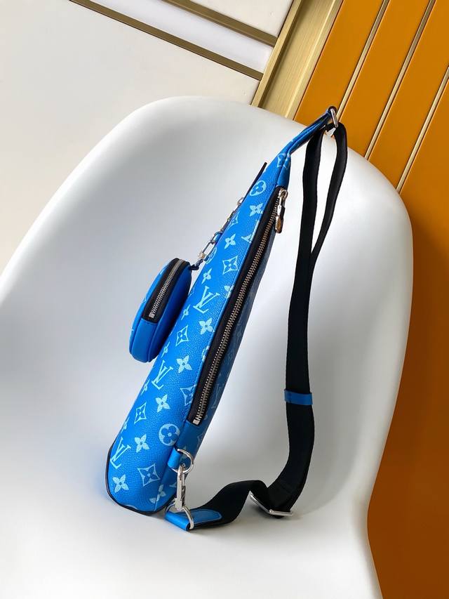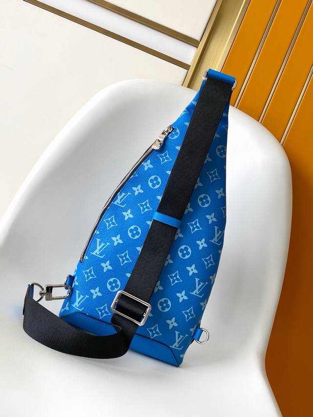 Pm31075蓝色 原单 M30936男包胸包系列 Duo 单肩包 Duo 单肩包拼接 Monogram 帆布和 Taga 牛皮革,设有存放零钱或其他所需的可拆卸拉链袋和拉链侧袋,以悠闲格调诠释多元潮流理念,提供传统双肩包之外的随行之选。详细特征20 X 42 X 6 厘米。