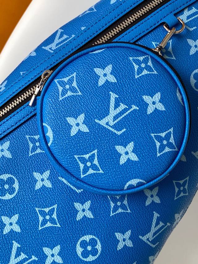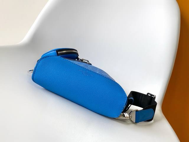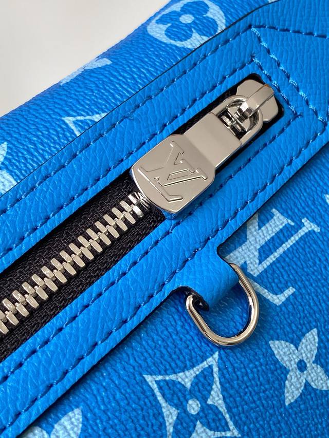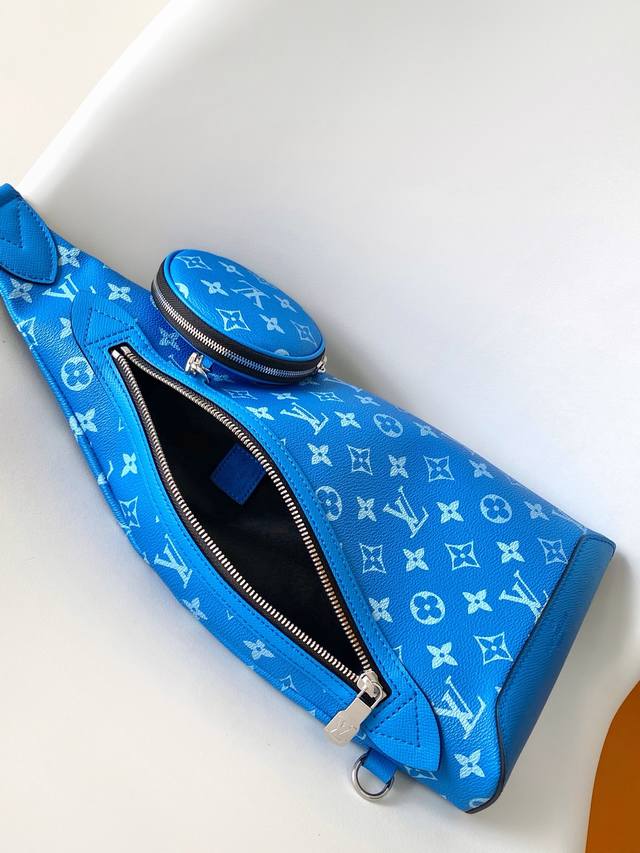 pm31075蓝色 原单 M30936男包胸包系列 Duo 单肩包 Duo 单肩包拼接 Monogram 帆布和 Taga 牛皮革,设有存放零钱或其他所需的可拆
