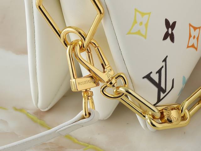 升级原版M59598 M59389 M59396 M13233 M21259 M25218 M20770 M1 1 本款 Coussin Bb 手袋为松软羊皮革压印 Monogram 图案,以紧凑廓形囊括内隔层,成就昼夜皆宜的雅致之选。粗犷链条和纤细皮革肩带均可拆卸,带来多种造型可能。尺寸:2 X 16.0 X 7.0 厘米 长 X 高 X 宽