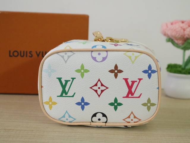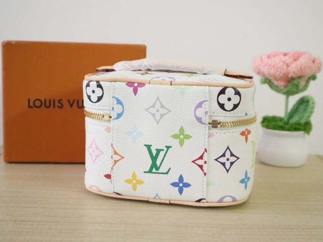 Nice Nano 化妆包以 Monogram 帆布塑造精巧构型,可摆放在浴室收纳指甲油或唇膏等美妆用品,或置于手袋归集小件物品。放平手柄即可收入狭小空间。