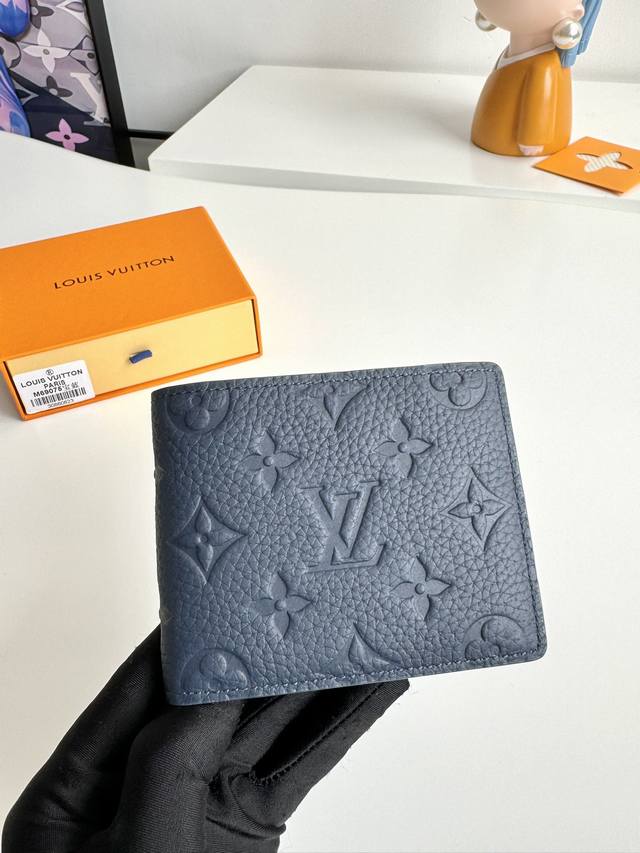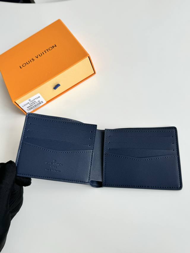 工厂P价 海外原单M69075宝蓝独家实拍!精致柔软的Taurillon皮革是钱夹的理想材质。 这款钱夹外型紧凑,却拥有多个口袋和卡槽,非常实用,可轻松放入任何衣袋。尺寸:11.5×9Cm