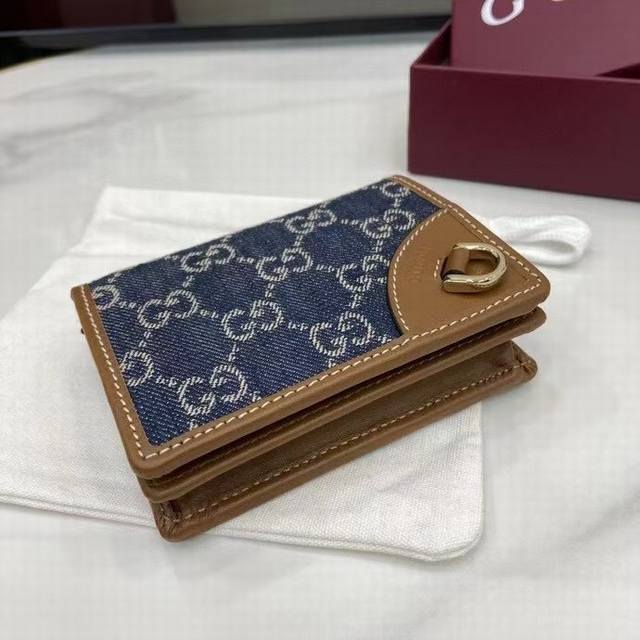 顶配版 新品 全新Gg Emblem系列焕新诠释品牌的隽永优雅风范和精湛工艺。这款蓝色和象牙白色迷你钱包以Gg牛仔布匠心打造。精心配设多个隔层,巧妙融入实用按扣开合。