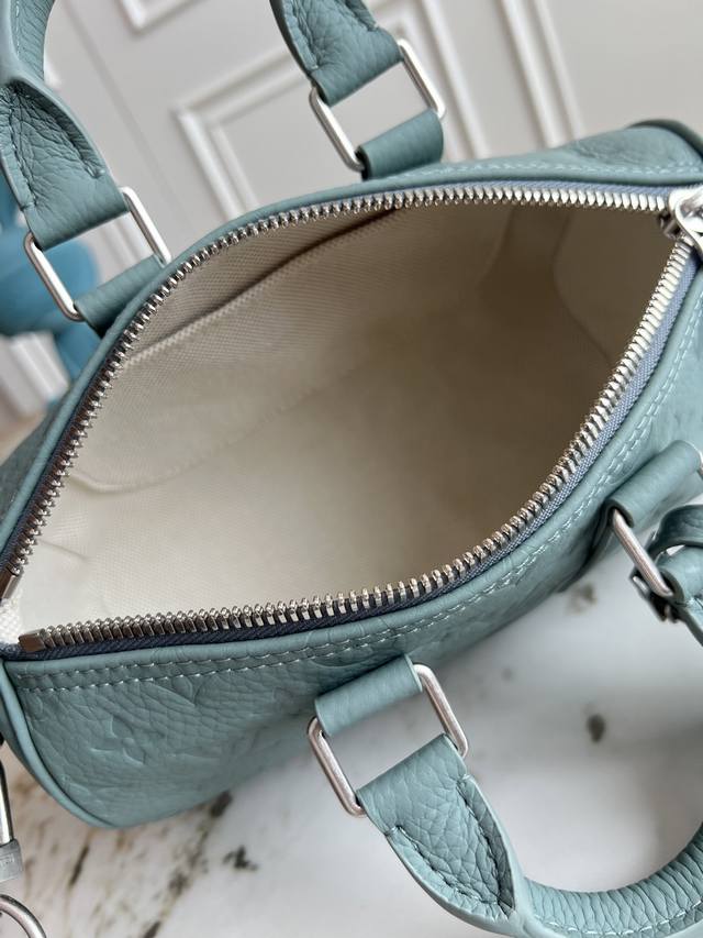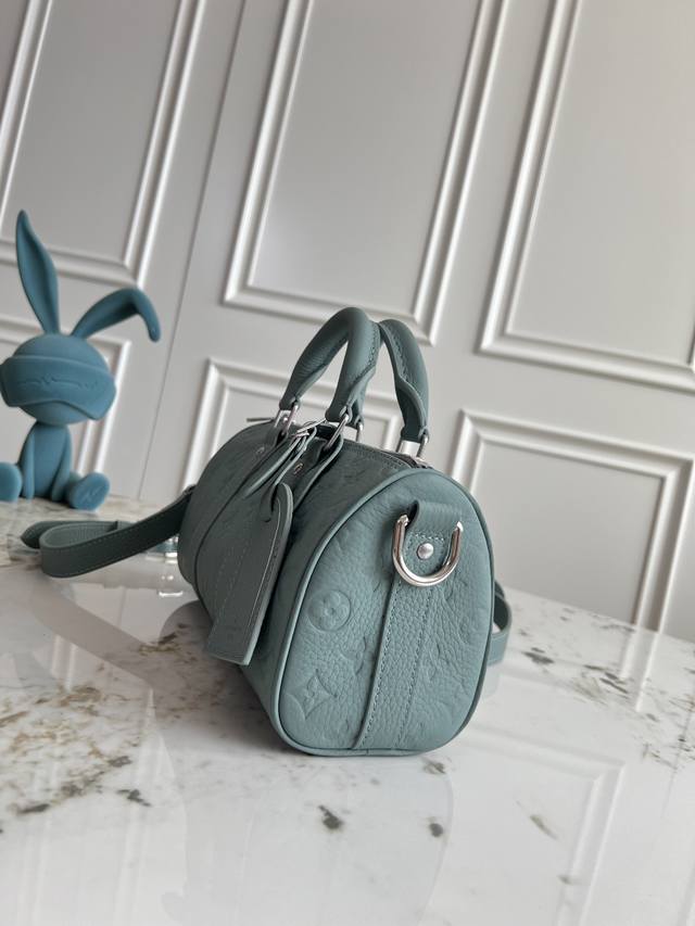 這款Keepall BandoulièRe 25以Taurillon粒面皮革打造,並綴以低調的Monogram壓花圖案。精緻色調完美搭配仿舊銀色金屬件,配有Louis Vuitton標誌的可拆式肩帶採用可調節長度設計,可作舒適肩背攜帶,而袋身更設有天然棉質襯裡。