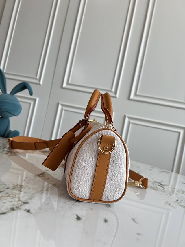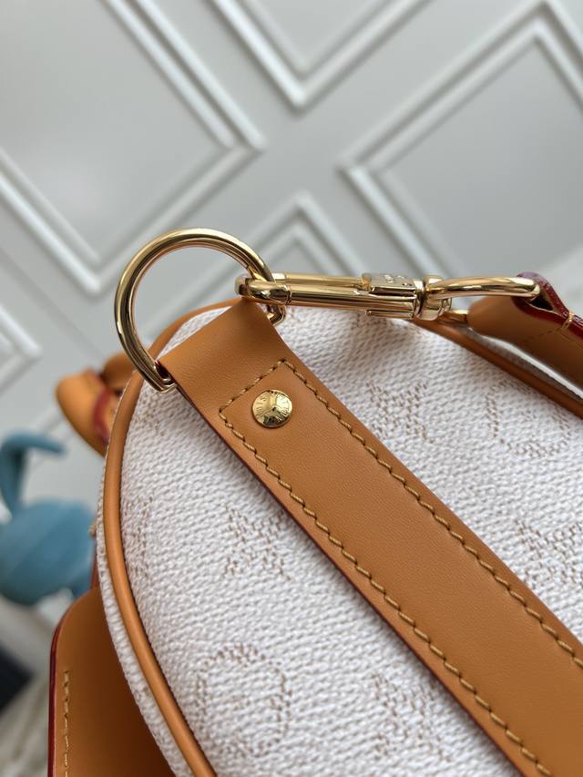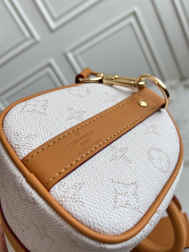 取材 Monogram Heritage 涂层帆布,以牛皮革塑造侧带、两端加固带和顶部手柄。可拆卸并调节的肩带实现肩背或斜挎选择~