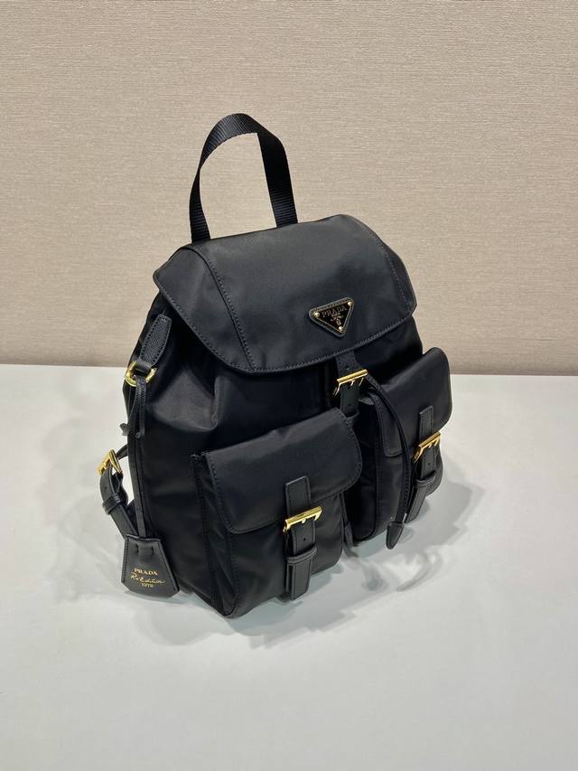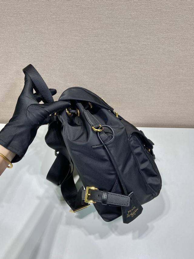 这款实用而创新的背包采用进口尼龙面料,可调式肩带和编织提手,可拆卸Re-Edition皮革钥匙环,正面搭扣翻盖口袋,翻盖涂珐琅三角形金属徽标,束绳开合,徽标印花Re-Nylon衬里配两个内袋,其中一个带拉链,容量客间大。经典又实用,又是一款永久不过时的爆款