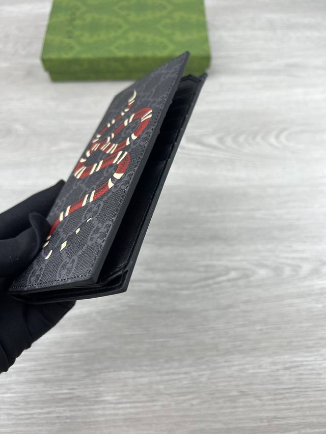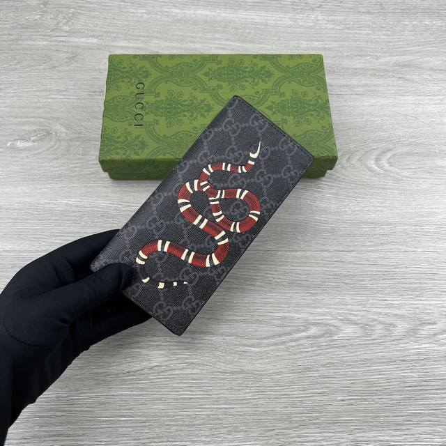 Gucci 饰Gg珊瑚蛇细节西装夹钱包。Gucci小件皮革配饰突破设计界限,不断以个性方式焕新演绎经典单品。这款男士钱包将经典Gg Supreme帆布与黑色Gg配件匠心糅合,成就现代时尚的精美配饰。黑色皮革滚边,云纹织物衬里Gg细节,内部:14个卡片隔层,4个钞票隔层 型号:451275 蛇 尺寸:17.5*8*1.5Cm,颜色:黑色,咖啡