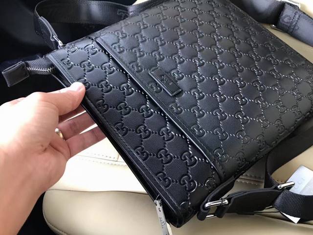 型号:33013-2~斜挎包黑色 古奇 Gucci 男士休闲系列挺阔流畅大方的楦型设计,以精湛缝线勾勒休闲的雅致情怀、描写男人自信的轮廓!看似简约的一款、实际做工相当复杂、[跳跳][跳跳][跳跳]非常简单经典。规格:24X27X6Cm