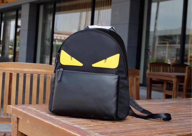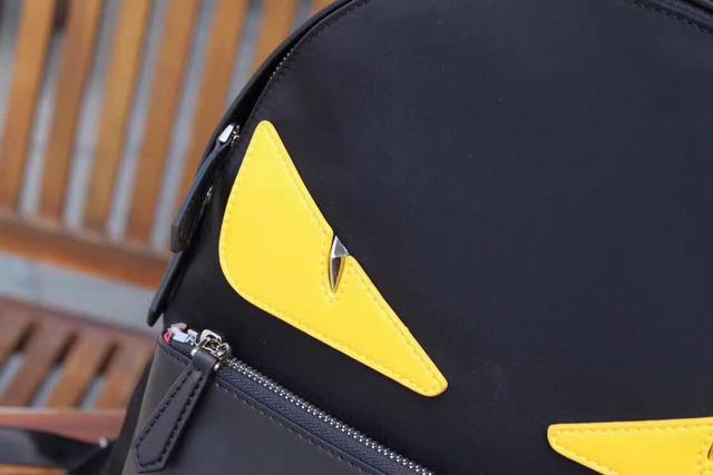 批 顶级原单 型号:33205-1芬迪Fendi 新款布配皮书包出货芬迪小怪兽背包升级版原单品质 每一个细节跟足对版双肩包尼龙拼接黑色皮革背包嵌入Bag Bugs眼睛图案造型正面拉链口袋皮革侧面和提手透气科技网眼布背衬双拉链封口和内袋商务旅行休闲必备爆款尺寸:38-35-14Cm