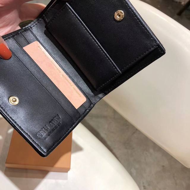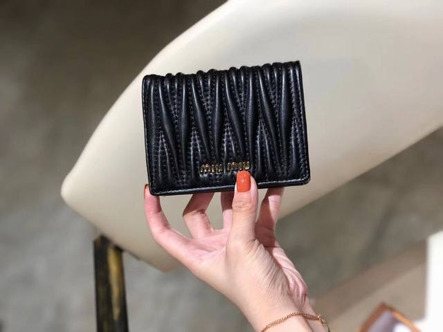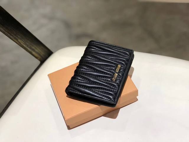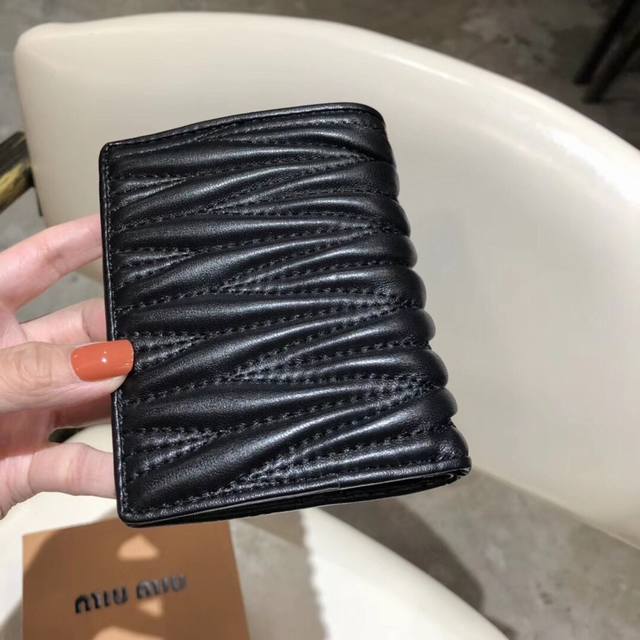 颜色 黑色 粉色尺寸 11.5X10Miumiu专柜最新款!专柜爆款热力来袭,经典提花压纹设计,釆用顶级进口小羊皮,皮质细腻柔软,做工精细