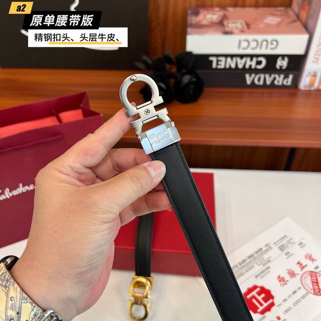 ferrago 菲拉F 女款 雙面头层牛皮 全新效果精钢材质搭扣 寬度25毫米 該皮帶可調節 且能根據需要裁剪達到修身效果