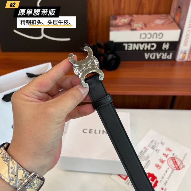 / 赛琳C家 女款雙面头层牛皮 全新效果精钢材质搭扣 寬度25 20毫米 該皮帶可調節 且能根據需要裁剪達到修身效果