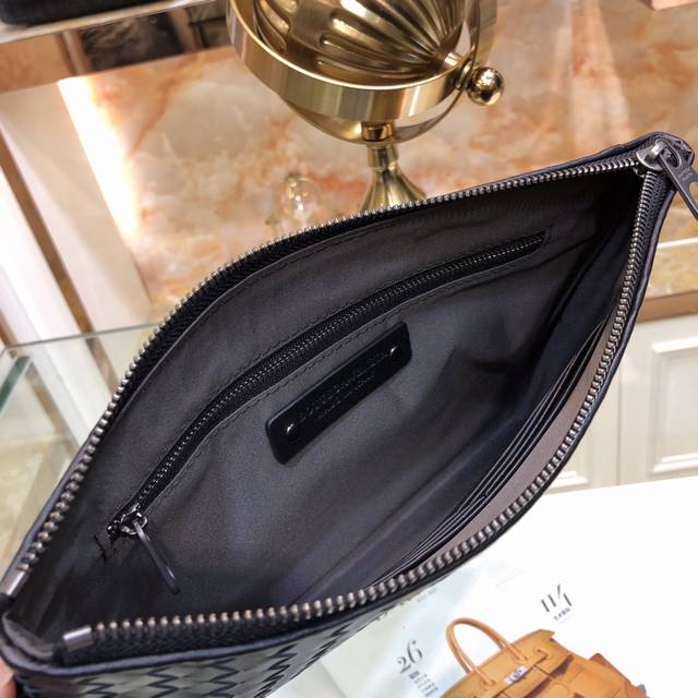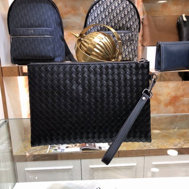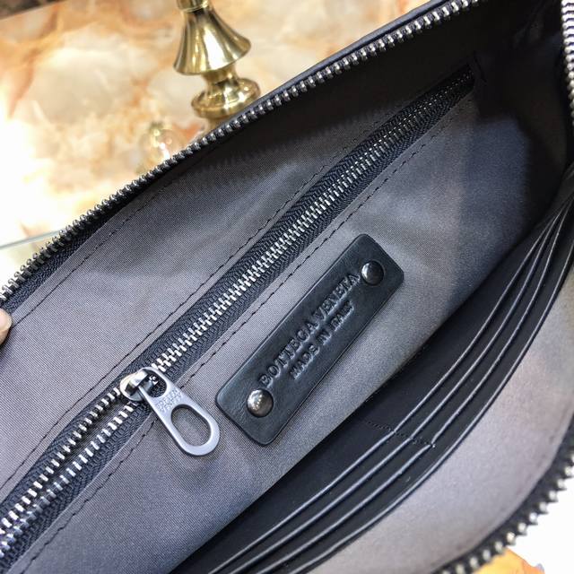 / 配盒子 Bv男士手包遵循传统手工艺精选打蜡牛皮材质 手工编织既可以作为钱包也可以当手包使用简洁款式 包身全编织 实用手带秘袋口拉链 内里拉链颜色:黑色,Size