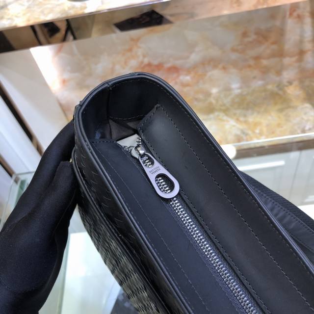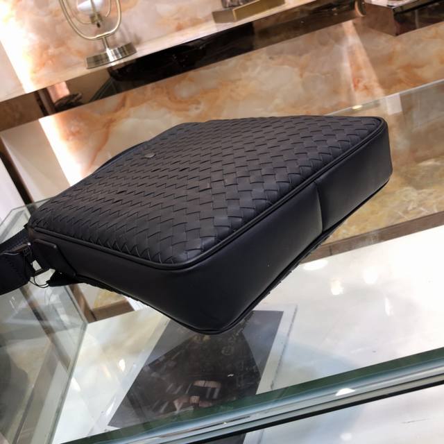 Bv 最新款男士单肩包 原单品质 官网同步 采用顶级打腊胎牛皮 手感超赞 专柜原装五金 独特的设计风格 完美至极 细节做工精致 大气中有内涵 高端上档次 高品质颜色:黑色,尺寸:28-27-5.5Cm。