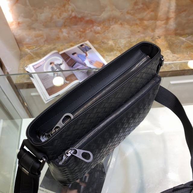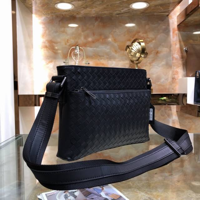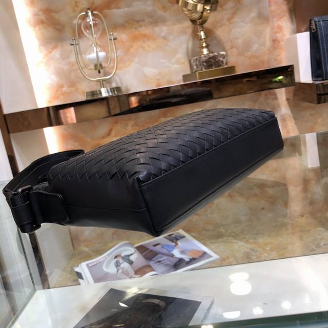 Bv 最新款男士单肩包 原单品质 官网同步 采用顶级打腊胎牛皮 手感超赞 专柜原装五金 独特的设计风格 完美至极 细节做工精致 大气中有内涵 高端上档次 高品质颜色:黑色,尺寸:26-19-5Cm。