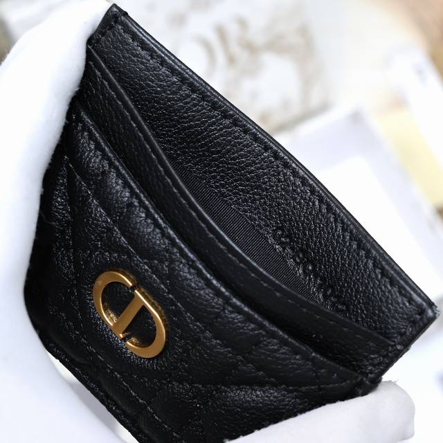 Dior Caro 五格卡夹柔软牛皮革藤格纹 编号:S5 Uwhc M900 Tu Dior Caro 五格卡夹 黑色 这款 Dior Caro 五格卡夹是本季新品,优雅实用。采用黑色柔软牛皮革精心制作,饰以藤格纹缉面线,正面 Cd标志。高雅精致,设有五个卡槽,