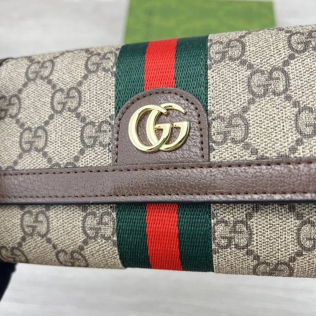/ 官网同步新款!Ophidia系列~两折长夹,采用Gg Supremepvc面料配以标志性双G 五金唛头,经典著作红绿色织带,精制而成!款号:523153, 尺寸
