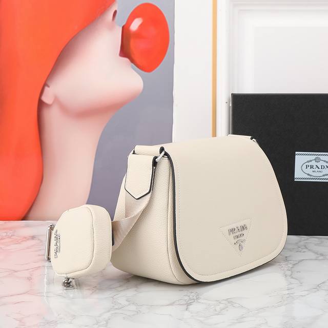 回货1Bd293 这款斜跨包采用进口鹿皮纹牛皮,翻盖设计,配有一条可调节长肩带,最爱是肩带上的小包太完美,容量空间大,简约大气,手感超柔软赶紧入手吧 长24X高