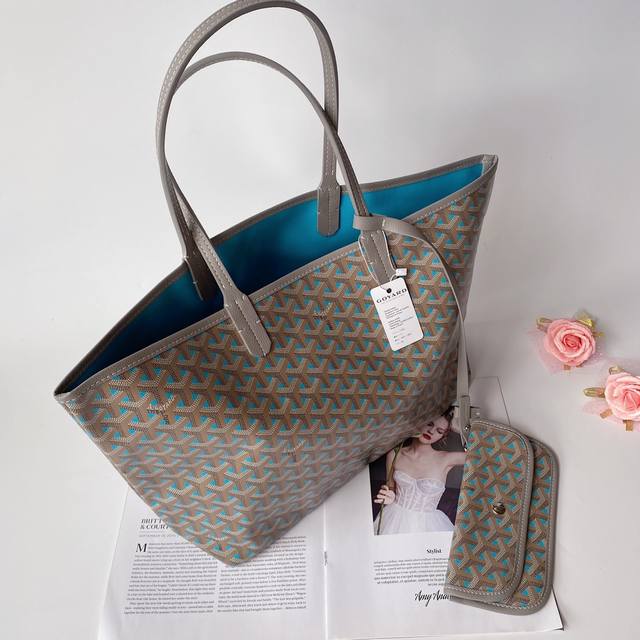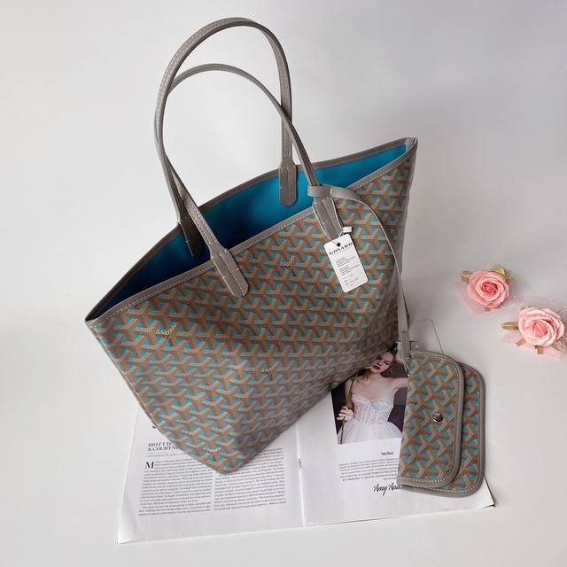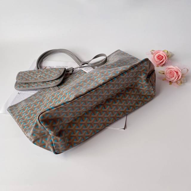 Goyar 戈雅 购物袋小号 Goyard手绘花纹有自己的特色,不管是亮眼的鲜艳色,还是低调的深色系,拿起来都很显质感。购物袋简单大方,时尚 百搭原版皮,原版五金,尺寸35*14*28袋口47Cm 灰蓝色