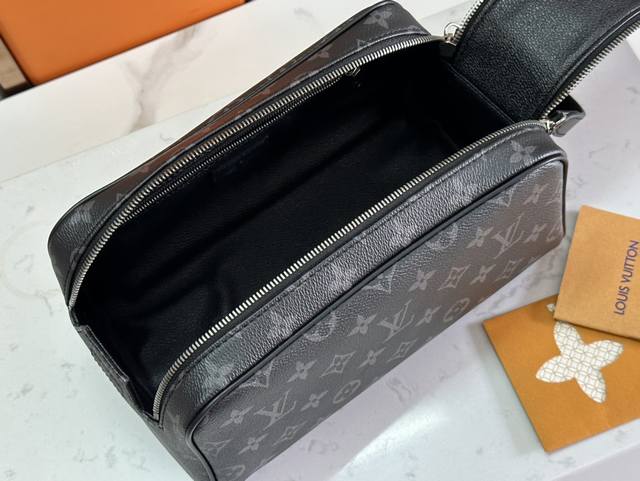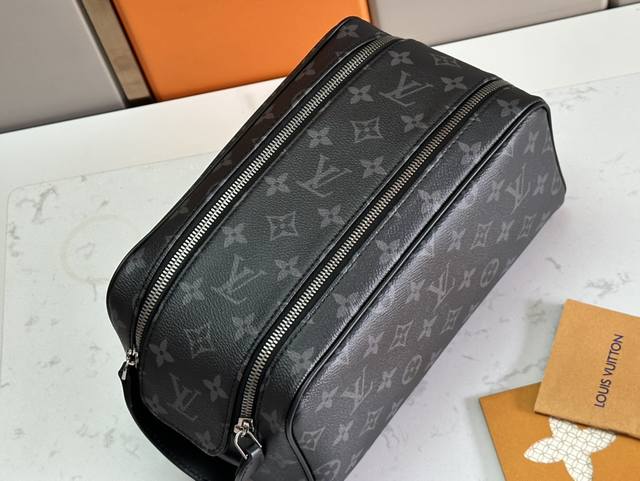 顶级原单 M46354 老花! 化妆包 Locker Dopp Kit兼備現代的時尚風格及路易威登標誌性的典雅格調,以品牌經典的Monogram Eclipse