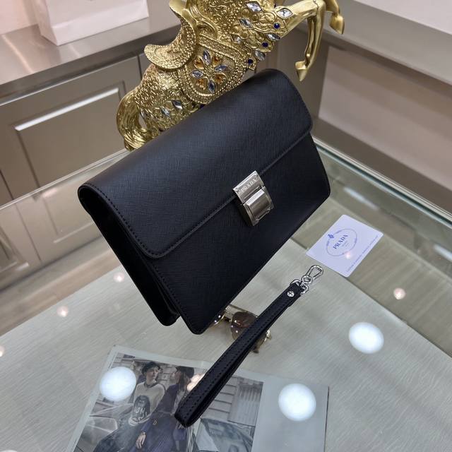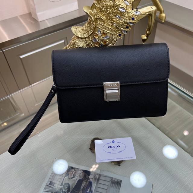 prada 普拉达 新款男士定型手拿包,采用进口十字纹牛皮制作,搭配顶级五金配件,在手包系列中实属佼佼者。商务人士与潮流达人皆适用的款式。 喜欢的速度下单 型号