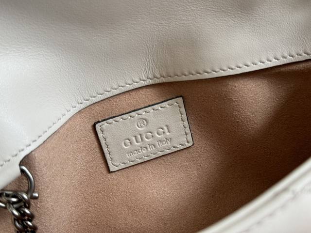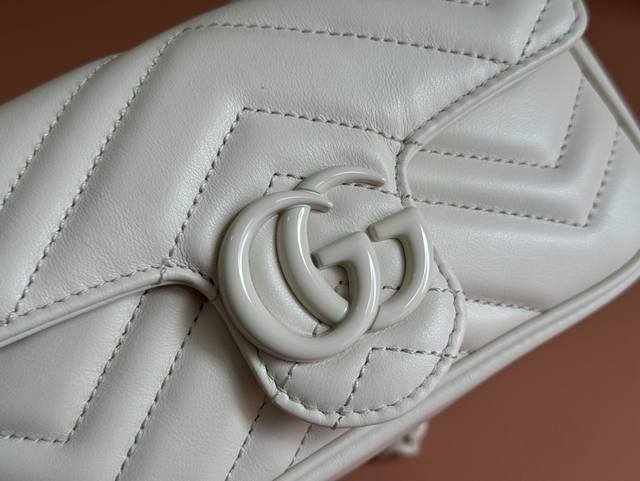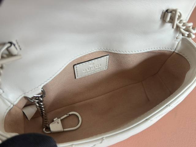 原厂皮配 Cdfmall三亚免税店手提袋 Gg Marmont链条马卡龙系列黑色迷你手袋,配有钥匙扣,可以用于将此袋绑缚在另外更大的手袋上。采用颇具结构化的柔软造型,翻盖扣配以Gg金属配件。金属配件从70年代经典设计中汲取灵感。采用绗缝人形花纹真皮制作。