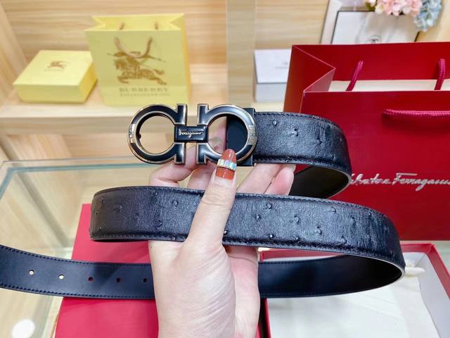 如果不知道送男朋友 送客户 送老公 哪款皮带,选菲拉格慕绝对错不了啦!配正装,多了一份内涵,低调中带着稳。配休闲牛仔裤,多一份阳光帅气,任何年龄都百搭,鸵鸟皮纹,性价比超搞,带身宽度3.5厘米,附带包装礼盒