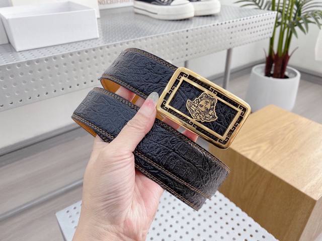 宽度3.5Cm Versace 范思哲 两面手掌纹 此款柔软的皮带饰有一个几何形状的希腊回纹别扣,既时尚又优雅