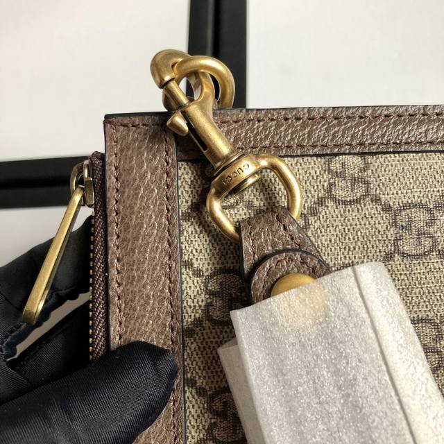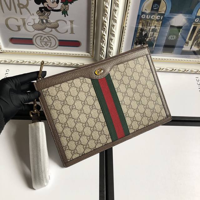 / 顶配版 顶级 配绿盒包装高品端质采用进口环保面搭料配意大牛利皮,颇结具构感手拿包中间配以标志性带织与标性志五金,精心计设而成 型号:523156 Pvc啡 尺寸