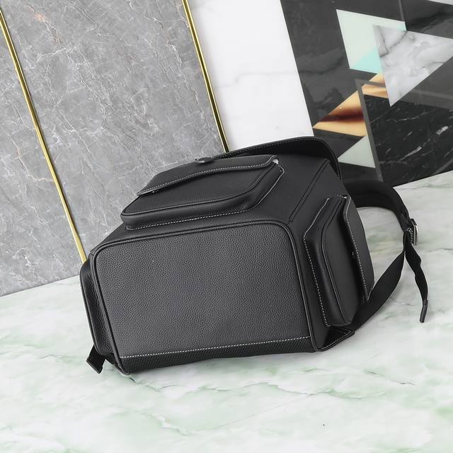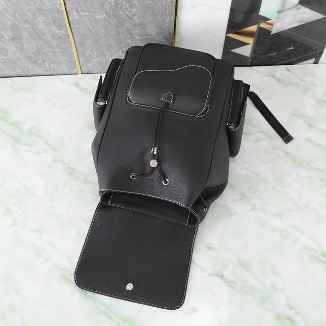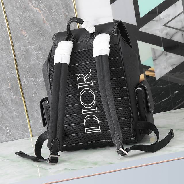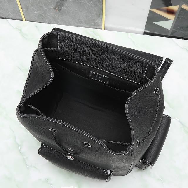 这款马鞍双肩背包采用时尚的原创设计,突显马鞍风格。黑色粒面牛皮革搭配对比鲜明的缉面线,正面饰以“Dior”标志。宽敞的设计设有可收纳各种日常用品的隔层,正面翻盖马鞍口袋和两个侧面翻盖口袋便于收纳钱包、钥匙、耳机或手机。实用百搭,是各式装扮的点睛之笔。 型号:1Adba161 黑色粒面牛皮革搭配对比鲜明的缉面线 正面金属覆层黄铜“Dior”标志 内部饰以“Dior”压花标志 翻盖和抽绳开合 绗缝网眼织物可调节肩带 顶部皮革手柄 背部采用加垫网眼织物加固,搭配“Dior”标志 正面马鞍口袋和两侧翻盖口袋 内部