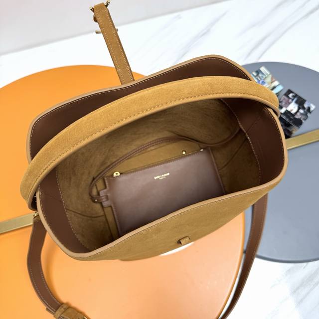 Le 5A7系列之新款超好看水桶包 带手提_全新包型,采用意大利的麂皮和牛皮,包身轮廓简洁、立体,看上去硬挺又不会太凌厉,底部带有个金属脚钉,搭配经典标志性金属Logo的插入式包扣,整体给人一种既经典优雅,又很时髦现代的独特气质!